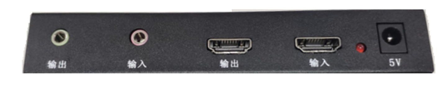 科博视频单向投射系统是一个桌面型设备,外接口包括:HDMI输入接口、HDMI输出接口、电源接口,其外观效果图如下: