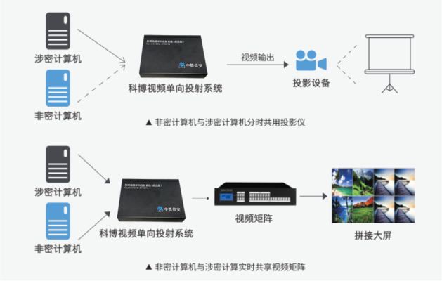 科博视频单向投射系统采用物理光单向技术,实现音频数据的单向传输,从物理通路上保证了无反向数据链路,进而杜绝了不可信设备通过音频线缆的主动攻击,保证了主机的安全性。